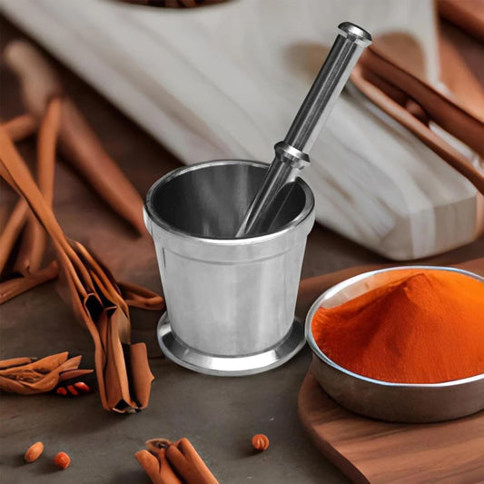 Stainless Steel Mortar & Pestle Set|Spice Mixer|Khalbatta|Okli Musal | Khal | Imam Dasta for Kitchen - Size 1