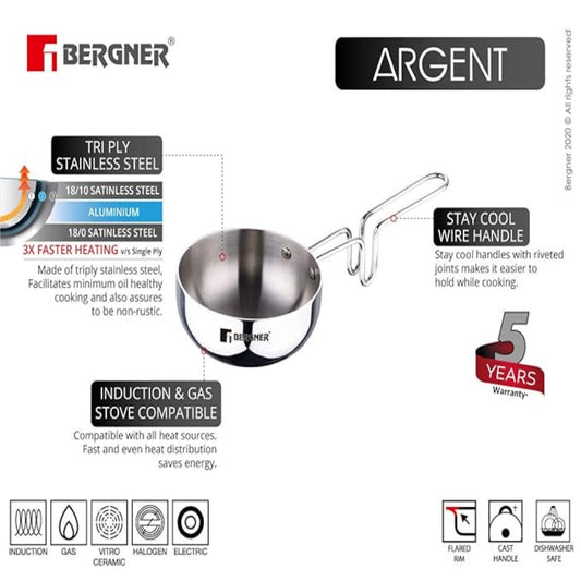 Bergner Argent Tri-Ply Stainless Steel Tadka Pan – 12 cm