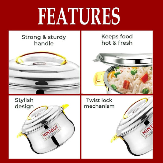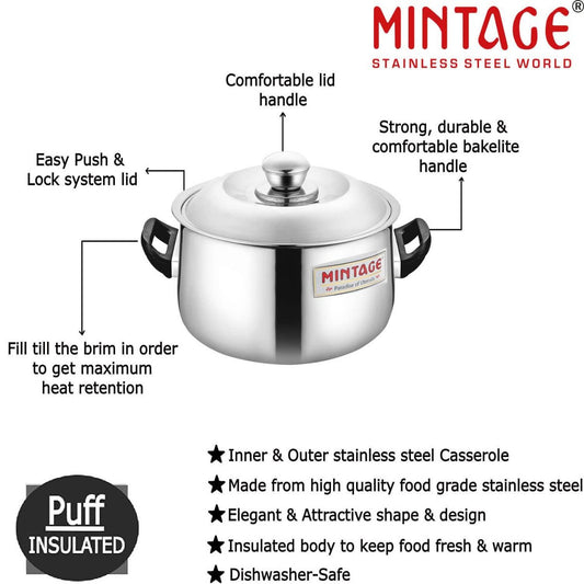 Mintage Stainless Steel Casserole Divine With Handle and Lid - 2200 ml - CDV-22