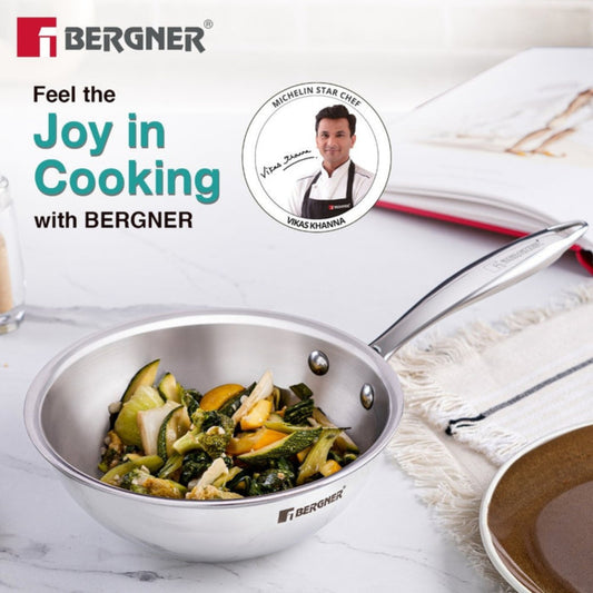 Bergner Hitech TriPly Stainless Steel Frypan | Nonstick Induction Base