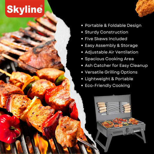 Skyline Charcoal Barbeque Briefcase with 8 Skews - VTL-4800