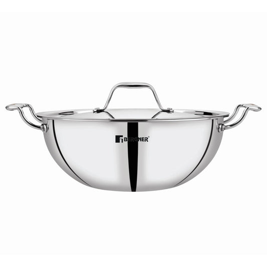 • Bergner Argent Tri-Ply Stainless Steel Deep Kadhai with SS Lid