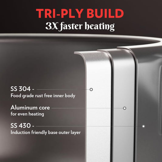 Borosil Pronto Triply Stainless Steel Inner Lid 3.5L Pressure Cooker, Induction - CFTPLYILC08