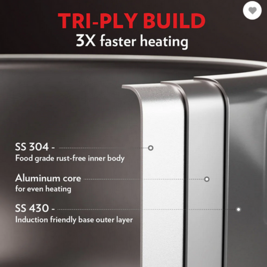 Borosil Triply Stainless Steel Inner Lid 3.5L Pressure Cooker, Induction Base - CFTPLYILC03