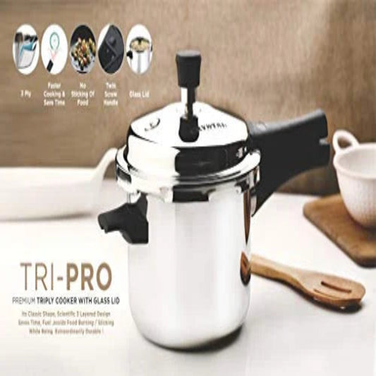 Crystal Tri-pro Triply Stainless Steel Pressure Cooker With Additional Glass Lid - Induction Base