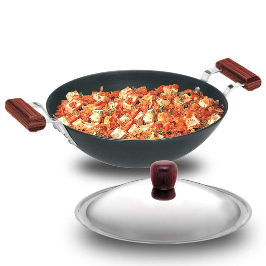 Vinod Platinum Extra Deep Wok 22 cm 2.4 Ltr With Lid Induction Friendly EDPTKD22