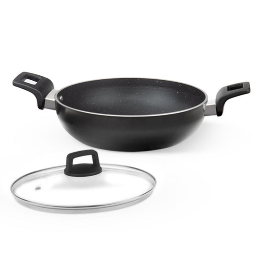 Borosil Granito Nonstick Kadhai With Glass Lid
