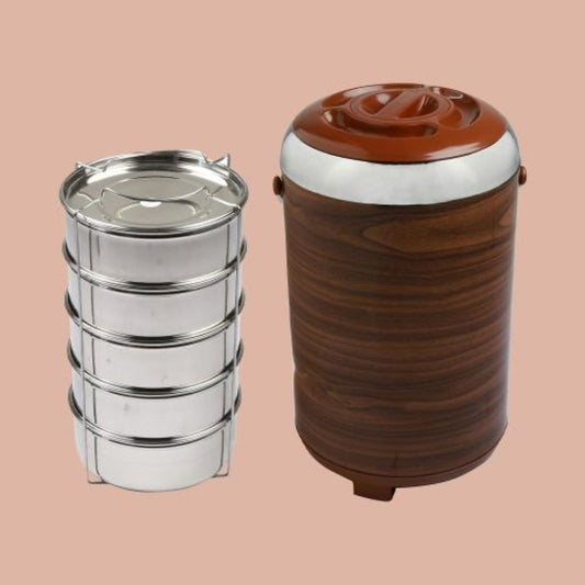 Jaypee Jumbo Ultra Wood Insulated Inner SS Lunch Box with 5 Containers | 6.70L Capacity for Office