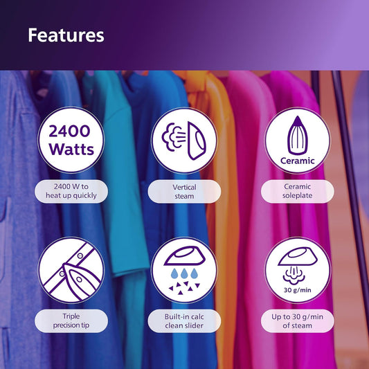Philips 2400 Watt Steam Iron, Steam glide Plus Soleplate Iron - DST5030/80