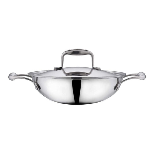 Vinod Platinum Triply Stainless Steel Kadai Wok 26 cm 3.2 Liter With Lid PTKD26
