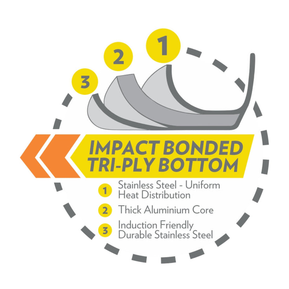 - Energy Efficient tri-ply induction compatible impact bonded bottom for faster and even cooking