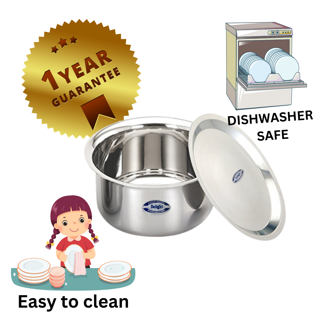 Delight Stainless Steel Tope/Patila/Topiya/Tapeli with Lid - Diameter 22cm,Capacity 3.5Ltr, Multipurpose,Induction and Gas Stove Friendly