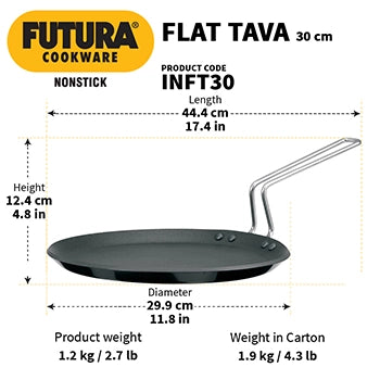 Nonstick Tava can cook all the foods that can be cooked in Hard Anodised Tava with less or no oil or butter, if required. The Futura Flat Nonstick Tava are particularly preferred for cooking popular South Indian snacks such as dosa and uthappam.