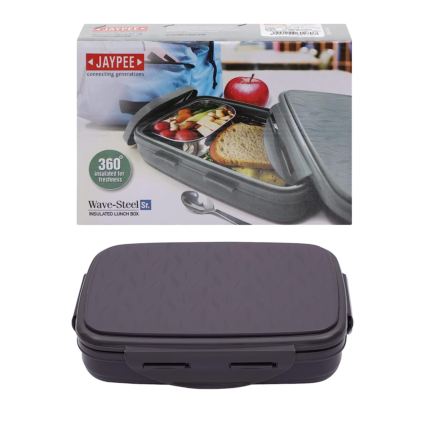 JAYPEE Stainless Steel Insulated Lunch Box Wavesteel Sr. Raider Grey, 600 ml, Suitable for School, Offices and picnics,Microwave Safe